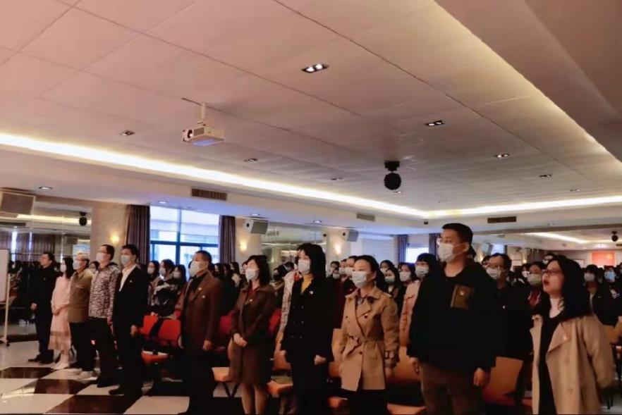 会议第一项议程,李彩兰同志同志宣布大会开始,与会人员奏唱《中华人民共和国国歌》。